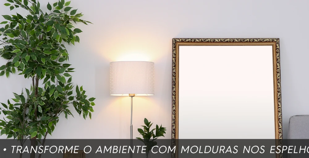 Já falamos da importância de espelhos nesse tipo de ambiente. Que tal agora dar mais personalidade para ele? As molduras dos espelhos ajudam a comunicar o seu estilo de decoração, dando um ar mais romântico, moderno, rústico ou clássico. Uma moldura mais trabalhada não precisa de muitos objetos à sua volta. Já uma moldura mais minimalista, pode estar junto de prateleiras e estantes, sem dar a sensação de muita informação.